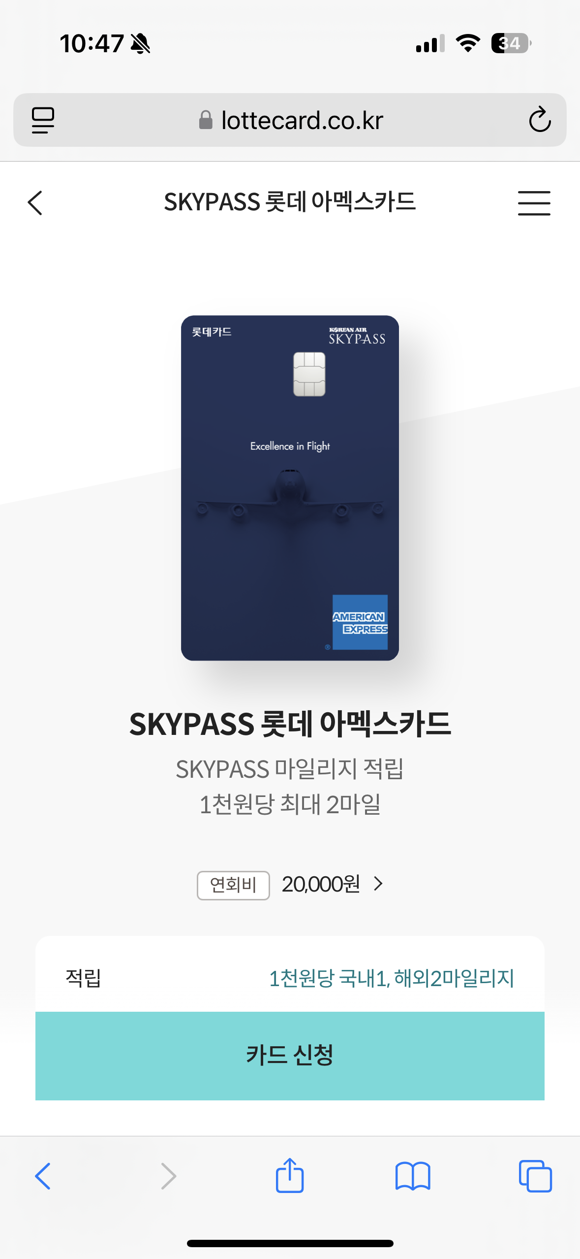 대한항공 천원 1마일리지 적립이 가능한 Skypass 롯데아멕스카드의 단종소식! ㅠㅠ