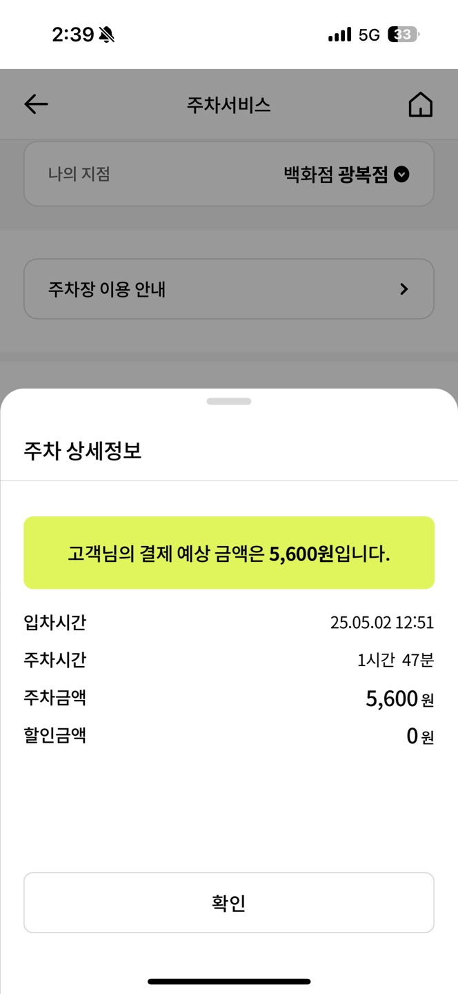 백화점에서의 주차비는 작은 금액 같아도 쌓이면 부담이 됩니다.