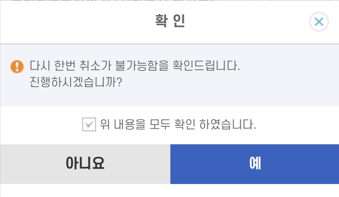 “다시 한번 취소가 불가능함을 확인드립니다. ”