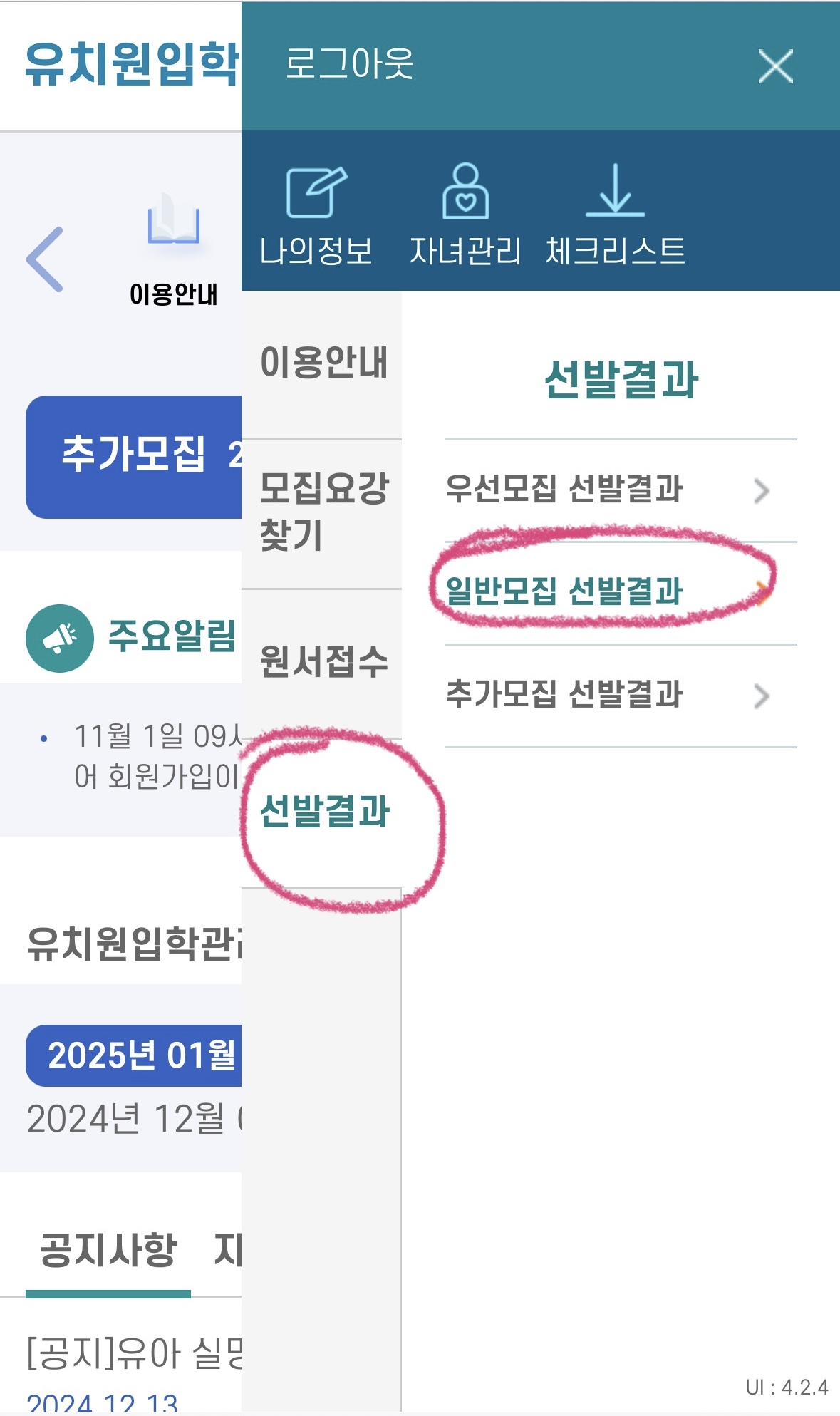 선발결과에서 제가 신청한 모집을 선택합니다.