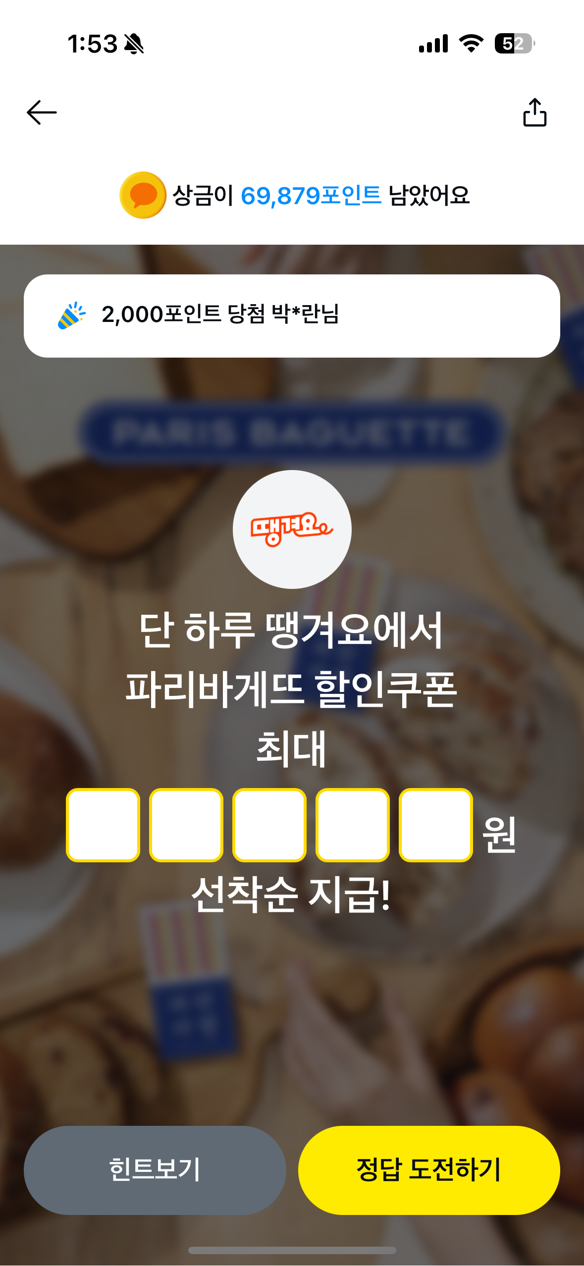 단 하루 땡겨요에서 파리바게뜨 할인쿠폰